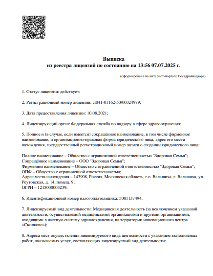 Вся представленная здесь информация получена из открытого публичного общедоступного источника. Если вы являетесь владельцем или официальным представителем мед.клиники "Клиника Здоровая семья", вы можете удалить эту страницу.